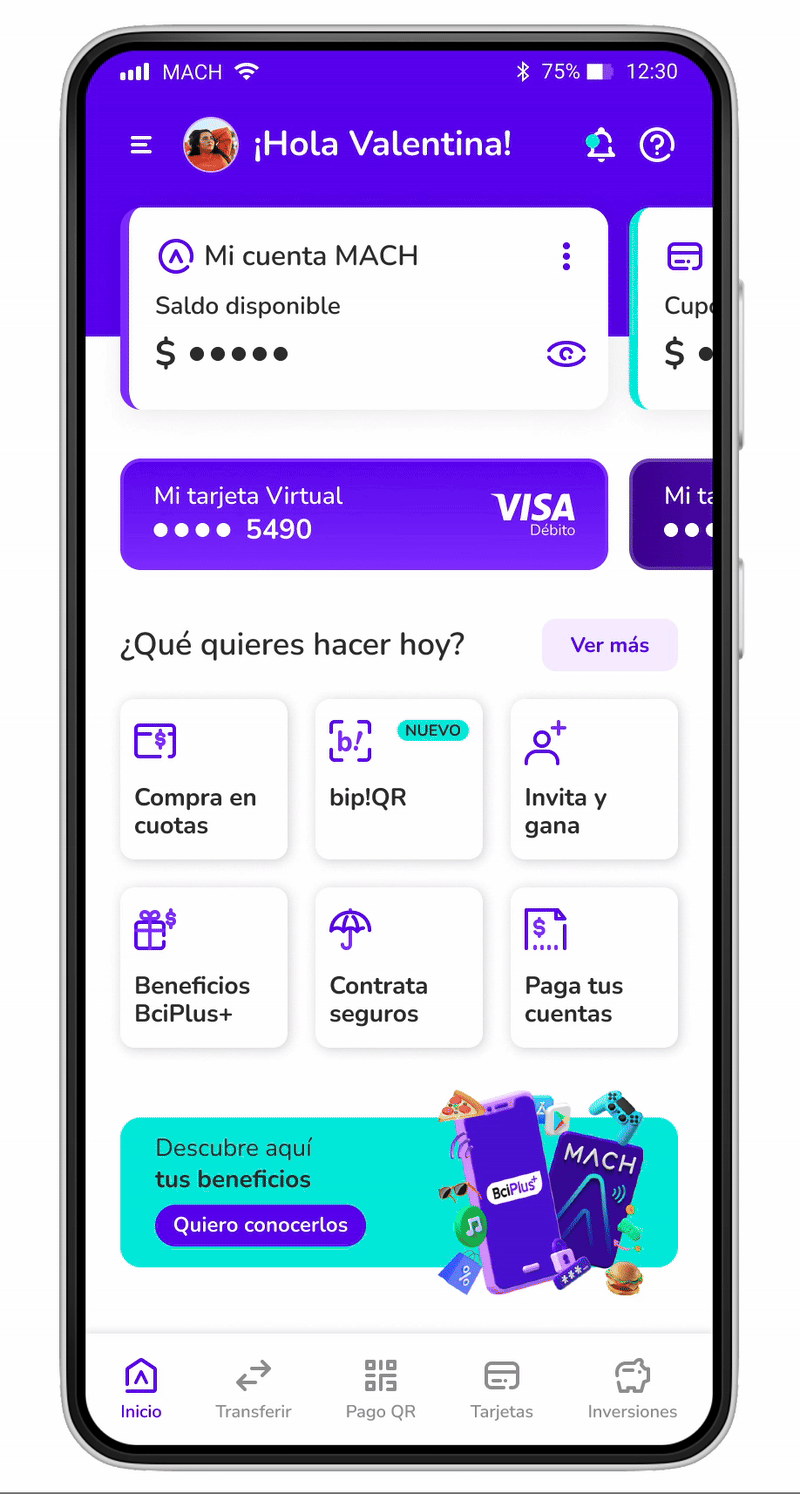 Debes tener saldo en tu cuenta MACHBANK para recargar tu bip!QR. Sigue los pasos a continuación: